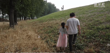 ↑ 楚思揚(左)和爸爸鄭加衛(wèi)一起散步。