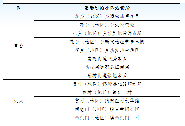 北京疾控中心公布6月16日0時至24時,我市新增新冠肺炎確診病例31例,病例活動過的小區或場所具體信息如下: