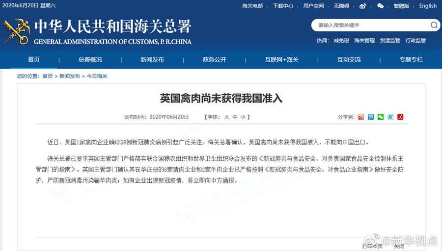 英國禽肉企業發生新冠肺炎感染,別擔心!英國禽肉尚未獲得我國準入-新華網