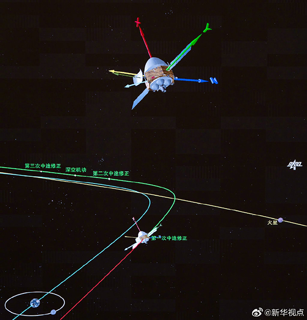 新華社北京8月2日電(記者胡喆)記者從國家航天局獲悉,8月2日7時整,我國首次火星探測任務“天問一號”探測器3000牛發動機開機工作20秒,順利完成第一次軌道中途修正,繼續飛向火星。