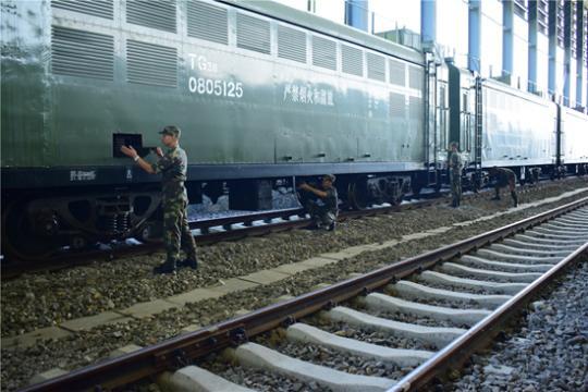 軍列到站,戰(zhàn)士們會第一時(shí)間下車檢查列車狀態(tài)。