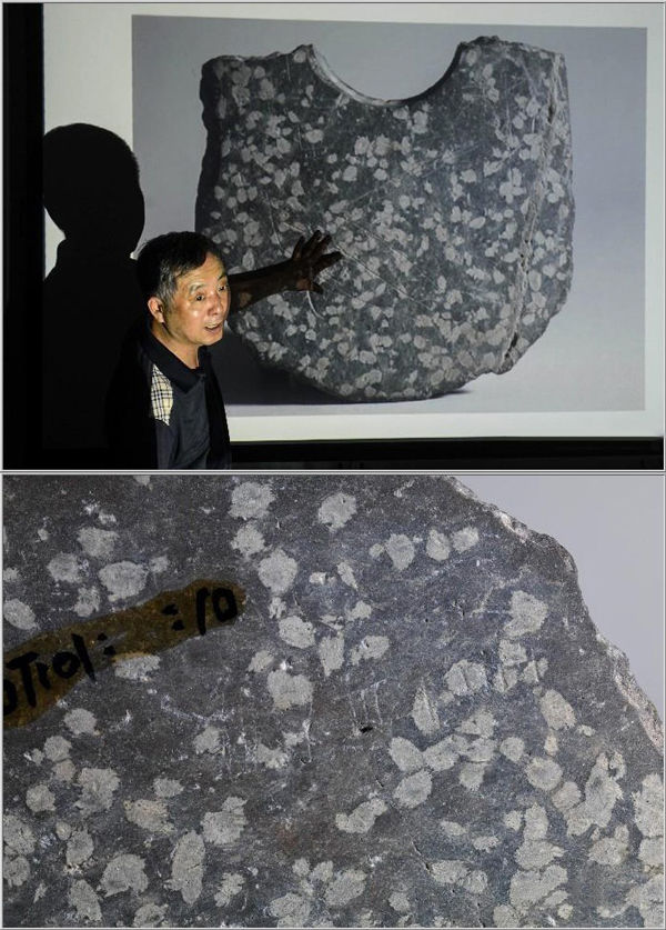 浙江平湖莊橋墳遺址,兩件殘石鉞上發(fā)現(xiàn)的刻畫符號經考證確認是良渚時期原始文字,距今約5000年 韓傳號 攝