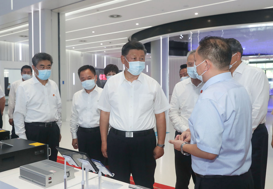 8月19日,習近平參觀安徽創新館,了解安徽省科技創新和新興產業發展情況。(新華社記者鞠鵬 攝)