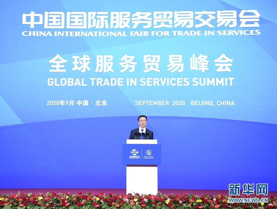 新華社北京9月5日電(記者孫奕、吉寧)中共中央政治局常委、國務院副總理韓正4日在北京出席2020年中國國際服務貿易交易會全球服務貿易峰會并宣布服貿會開幕。