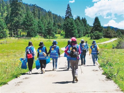 志愿者在魯朗出發準備撿垃圾。宋衛華攝