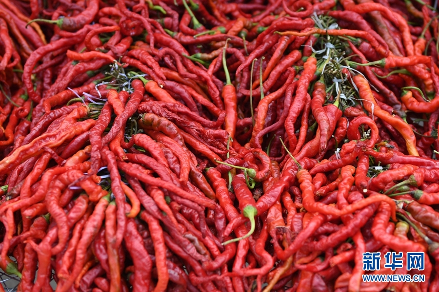 2020年慶祝中國農(nóng)民豐收節(jié)暨循化縣消費(fèi)扶貧“辣椒節(jié)”現(xiàn)場展示銷售的線辣椒。(新華網(wǎng)潘彬彬攝)