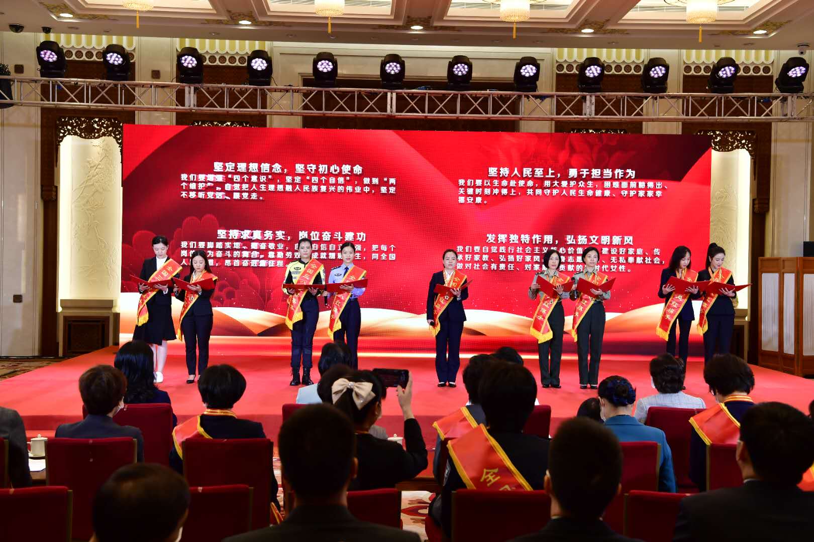 受表彰的抗疫全國三八紅旗手代表宣讀倡議書。