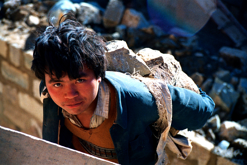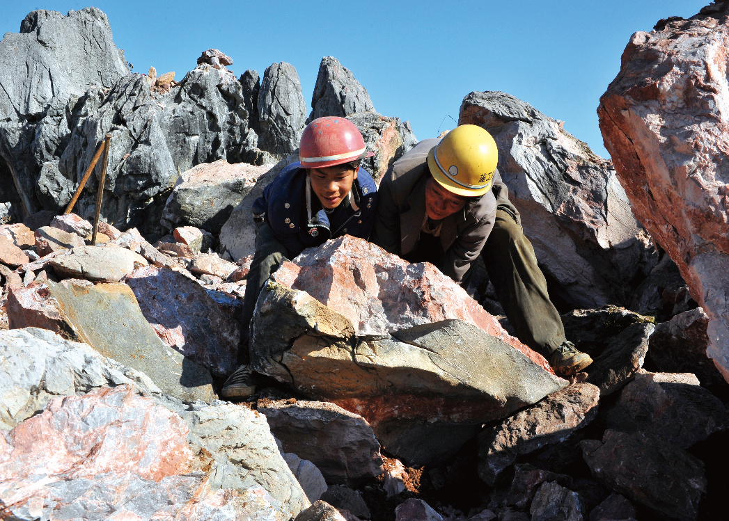 面對(duì)惡劣的生存環(huán)境,西疇人民“地瘦要壘埂,人窮要發(fā)狠”,用鏨子一點(diǎn)一點(diǎn)鑿,用大錘一錘一錘敲,用雙手一處一處刨,建成了“保水、保土、保肥”的三保臺(tái)地。圖為2010年蚌谷鄉(xiāng)長(zhǎng)箐片區(qū)群眾正在實(shí)施土地整治。(呂德仁攝)