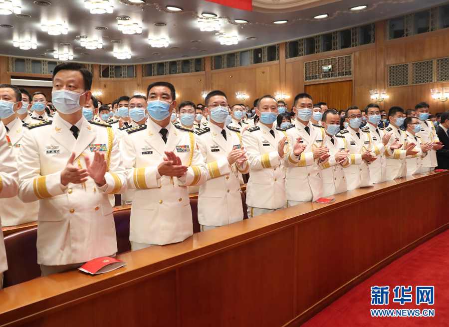 ??? 10月23日,紀念中國人民志愿軍抗美援朝出國作戰70周年大會在北京人民大會堂隆重舉行。圖為志愿軍老戰士、老同志入場時,大會現場的解放軍和武警部隊官兵代表起立鼓掌。(新華網 翟子赫 攝)