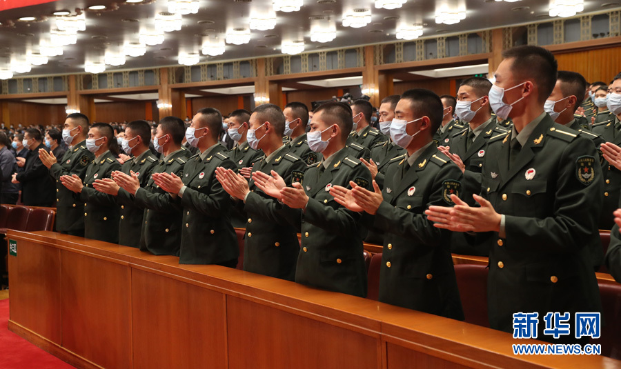 ??? 10月23日,紀念中國人民志愿軍抗美援朝出國作戰70周年大會在北京人民大會堂隆重舉行。圖為志愿軍老戰士、老同志入場時,大會現場的解放軍和武警部隊官兵代表起立鼓掌。(新華網 翟子赫 攝)