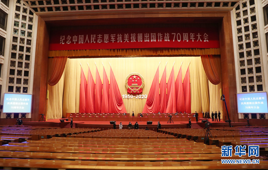 ??? 10月23日,紀(jì)念中國(guó)人民志愿軍抗美援朝出國(guó)作戰(zhàn)70周年大會(huì)在北京人民大會(huì)堂隆重舉行。圖為人民大會(huì)堂大禮堂。(新華網(wǎng) 翟子赫 攝)