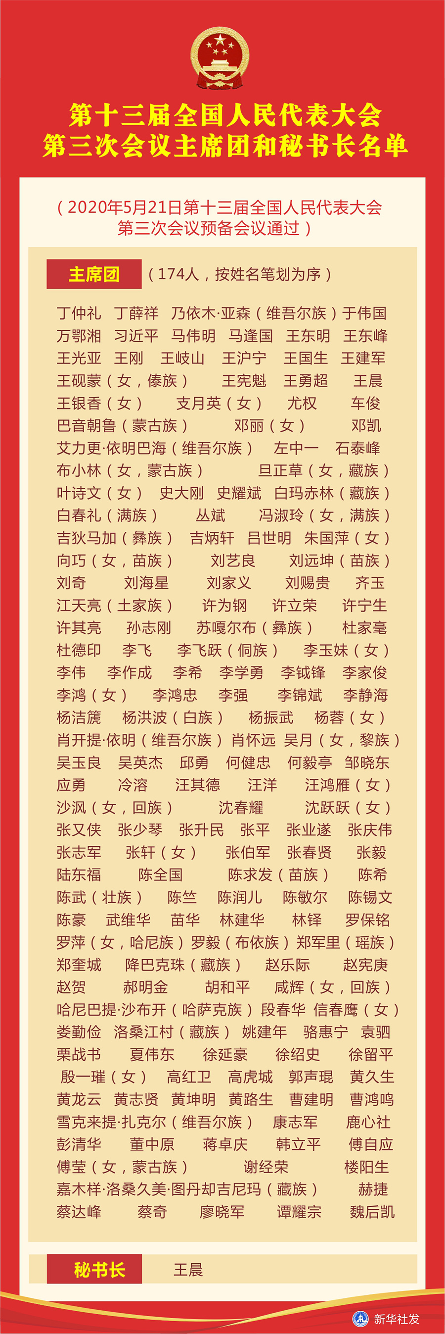 第十三屆全國人民代表大會第三次會議主席團和秘書長名單