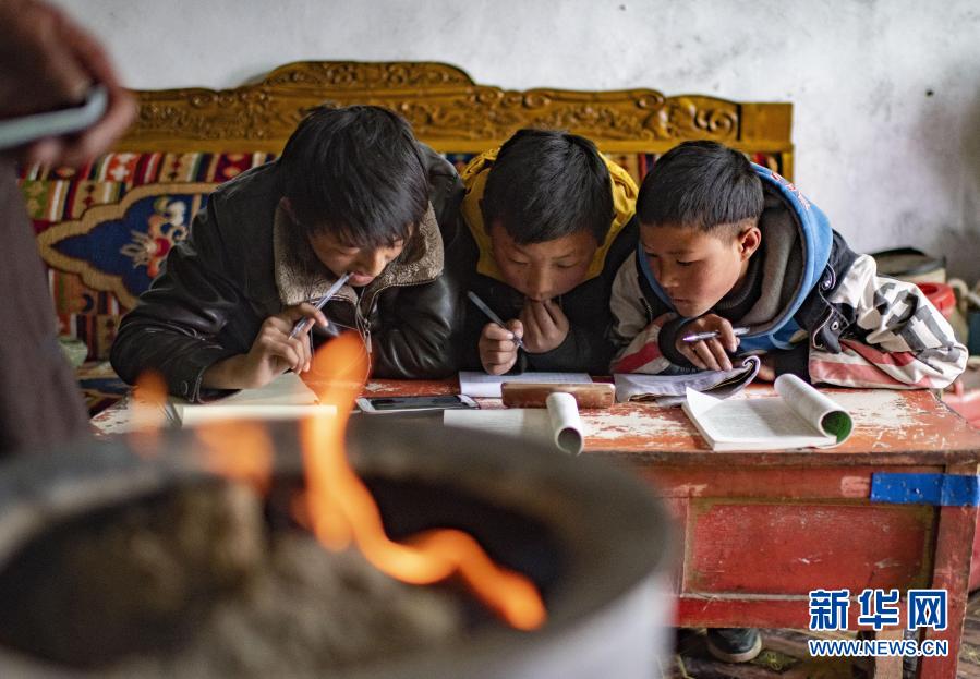 2020年3月6日,西藏當雄縣烏瑪塘鄉巴嘎村的孩子在上網課。