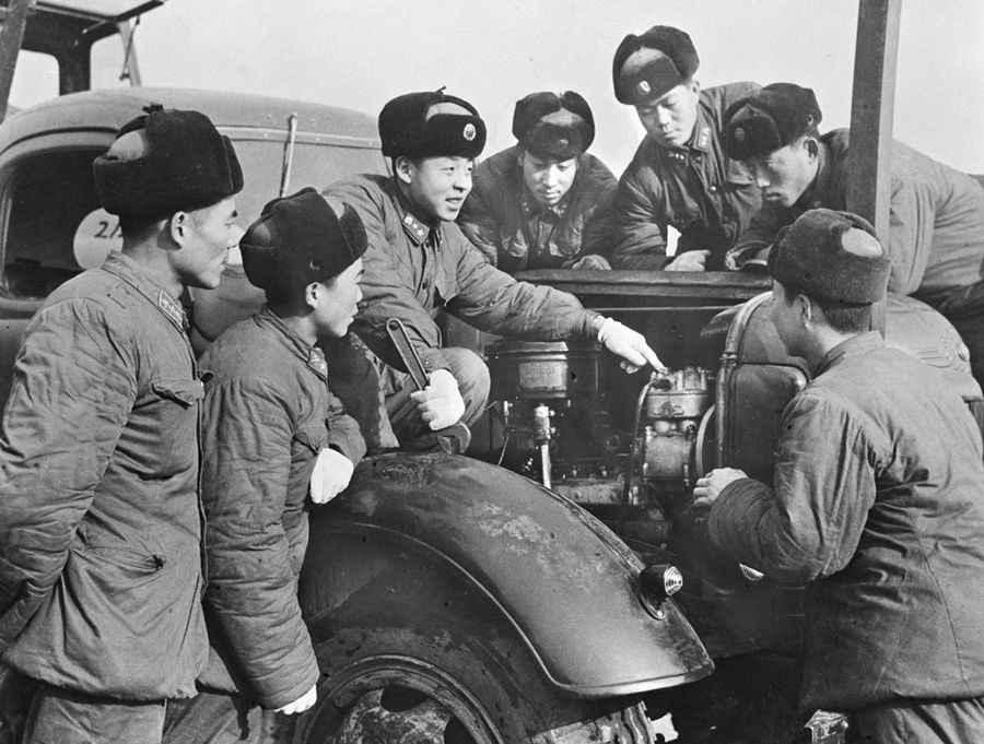 雷鋒同志是艱苦奮斗的模范,勤儉節約的標兵。這是他在向戰友們介紹節約油料和安全行車的經驗。新華社圖片