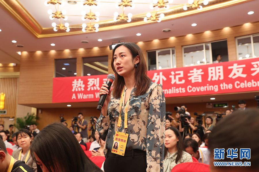 9月29日,慶祝中華人民共和國成立70周年活動新聞中心在北京梅地亞中心二層新聞發布廳舉辦第五場新聞發布會。圖為媒體記者提問。新華網記者 郭小天 攝