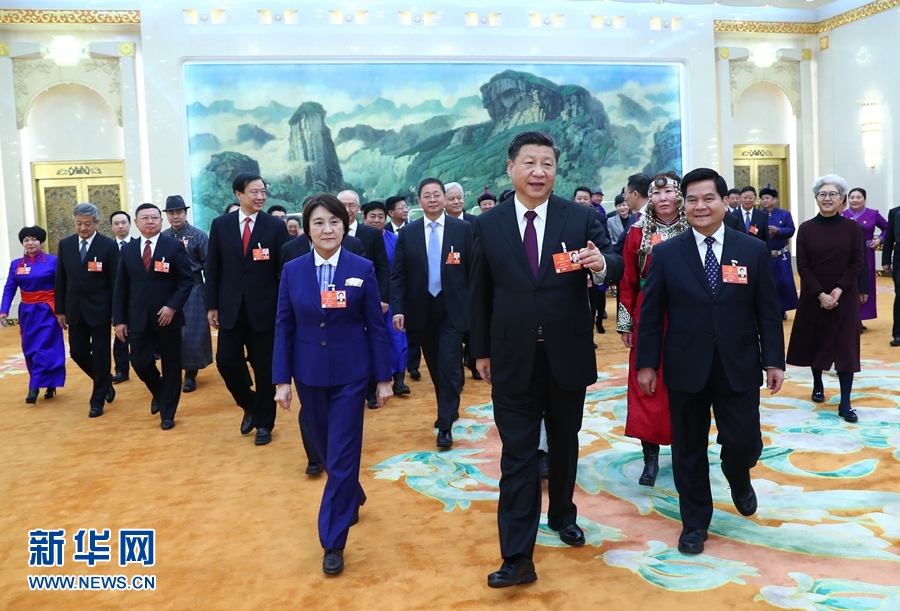 3月5日,中共中央總書記、國家主席、中央軍委主席習近平參加十三屆全國人大一次會議內蒙古代表團的審議。
