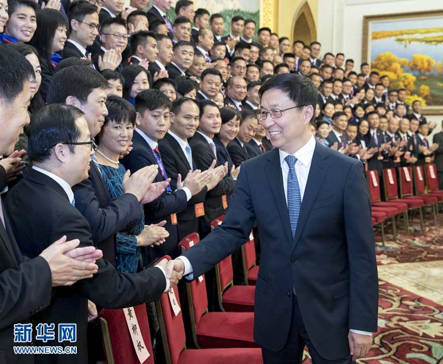8月27日,中共中央政治局常委、國務(wù)院副總理韓正在北京人民大會堂會見香港特別行政區(qū)保安局局長李家超率領(lǐng)的香港紀(jì)律部隊文化交流團全體成員。 新華社記者王曄攝