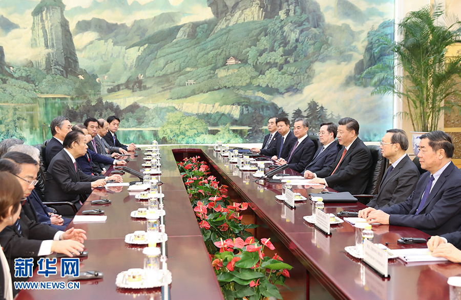 習(xí)近平指出,當(dāng)前,中日關(guān)系重回正常軌道,呈現(xiàn)積極發(fā)展勢(shì)頭。雙方要恪守中日四個(gè)政治文件確立的各項(xiàng)原則,堅(jiān)持和平友好大方向,持續(xù)深化互利合作,推動(dòng)兩國(guó)關(guān)系健康穩(wěn)定發(fā)展。要把中日“互不構(gòu)成威脅”、“互為合作伙伴,相互支持對(duì)方和平發(fā)展”的政治共識(shí)落到實(shí)處,把兩國(guó)各領(lǐng)域交流合作推向新水平。雙方要深挖合作潛力。中方歡迎日方繼續(xù)深入?yún)⑴c中國(guó)改革開放,希望日方更加積極參與共建“一帶一路”。雙方要加強(qiáng)溝通和協(xié)調(diào),共同維護(hù)多邊主義和自由貿(mào)易,共同推動(dòng)建設(shè)開放型世界經(jīng)濟(jì)。中方支持日方辦好二十國(guó)集團(tuán)領(lǐng)導(dǎo)人大阪峰會(huì)。今年是中日青少年交流促進(jìn)年,雙方要在兩國(guó)民間特別是青少年當(dāng)中廣泛播撒友好種子,推進(jìn)民心相通。