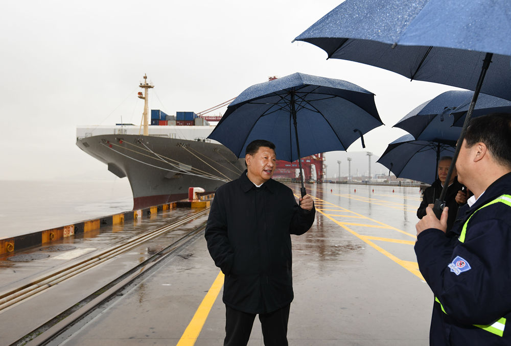 從新華社發(fā)出的現(xiàn)場(chǎng)照片看,總書記在寧波舟山港穿山港區(qū)碼頭上沒有佩戴口罩。↓↓↓