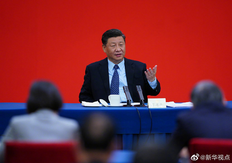 23日上午,中共中央總書記、國家主席、中央軍委主席習近平看望了參加全國政協十三屆三次會議的經濟界聯組委員,并參加聯組會,聽取意見和建議。(文字記者:張曉松、鄒偉 攝影記者:謝環馳)