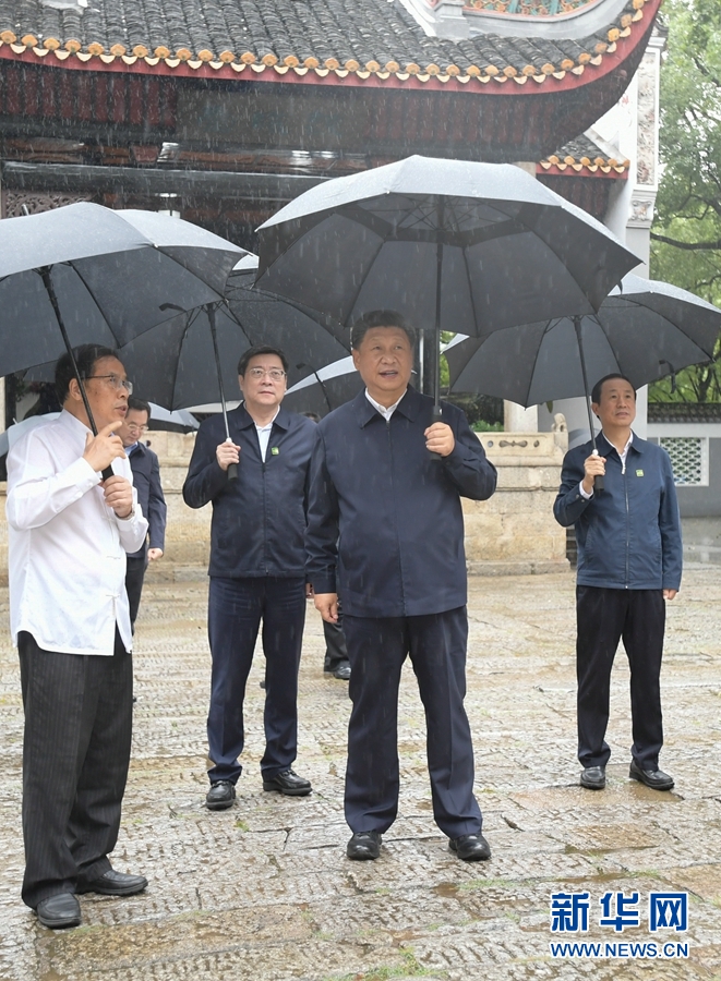 16日下午,習(xí)近平首先來到郴州市汝城縣文明瑤族鄉(xiāng)沙洲瑤族村考察調(diào)研。1934年,紅軍長征路過這里,留下了“半條被子”的感人故事。習(xí)近平走進(jìn)“半條被子的溫暖”專題陳列館,了解當(dāng)?shù)丶訌?qiáng)基層黨的建設(shè)、開展紅色旅游和紅色教育情況。習(xí)近平指出,“半條被子”的故事充分體現(xiàn)了中國共產(chǎn)黨的人民情懷和為民本質(zhì)。長征途中,毛澤東同志指出,中國工人、農(nóng)民、兵士以及一切勞苦民眾的出路在共產(chǎn)黨主張的蘇維埃紅軍,我們一定會勝利。今天,我們更要堅(jiān)定道路自信,兌現(xiàn)黨的誓言和諾言,同人民群眾風(fēng)雨同舟、血肉相連、命運(yùn)與共,繼續(xù)走好新時代的長征路。