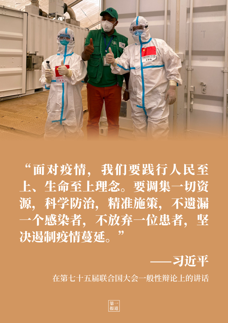 在第七十五屆聯合國大會一般性辯論上發表重要講話時,習主席提出抗擊新冠肺炎疫情的4點倡議,第一條就是“踐行人民至上、生命至上理念”。
