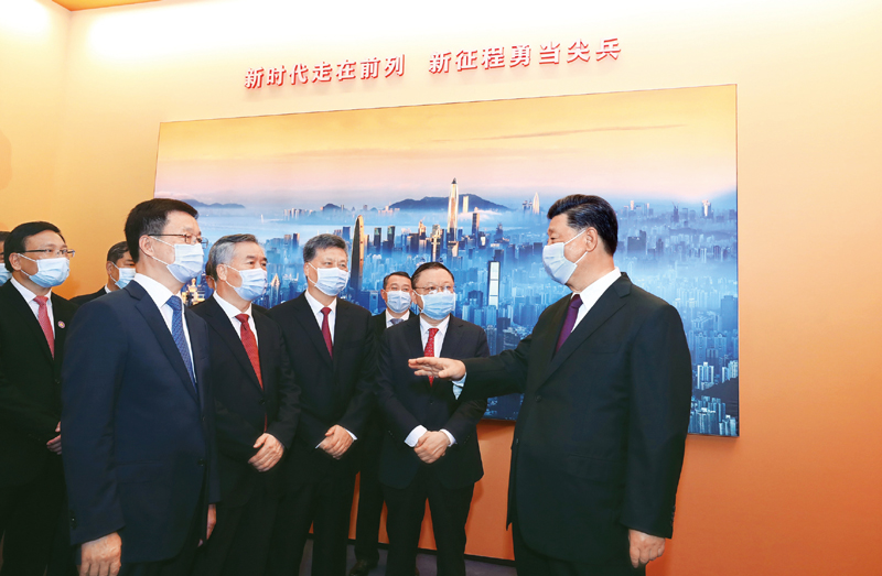 2020年10月14日,深圳經(jīng)濟特區(qū)建立40周年慶祝大會在廣東省深圳市隆重舉行。中共中央總書記、國家主席、中央軍委主席習(xí)近平在會上發(fā)表重要講話。這是當(dāng)天上午,習(xí)近平等參觀“從先行先試到先行示范——慶祝深圳經(jīng)濟特區(qū)建立40周年展覽”。 新華社記者 鞠鵬/攝