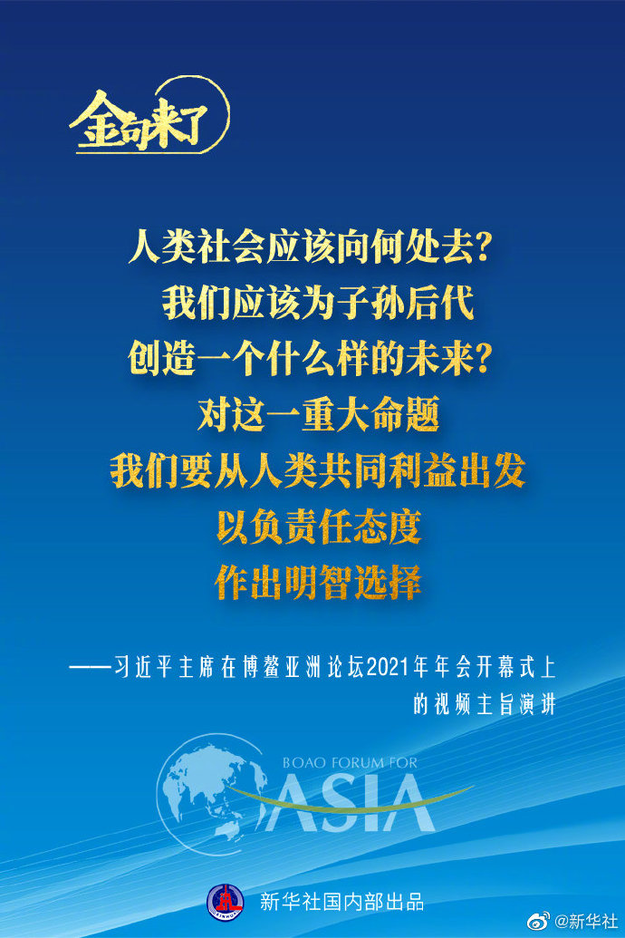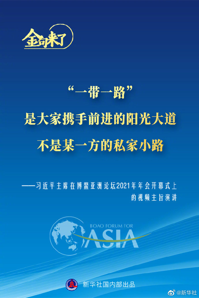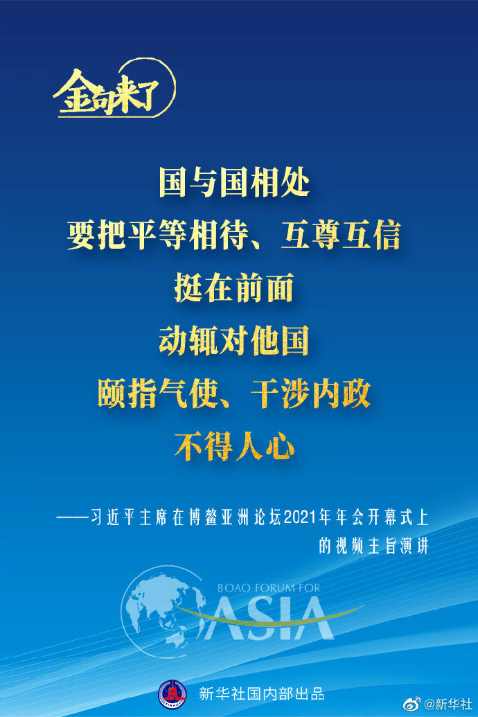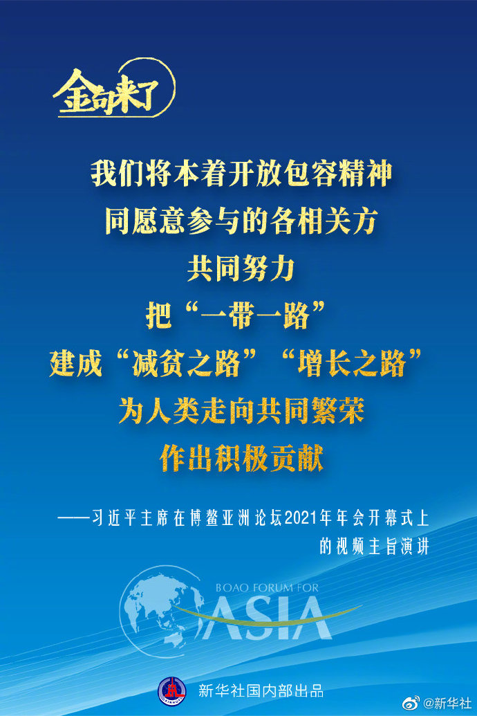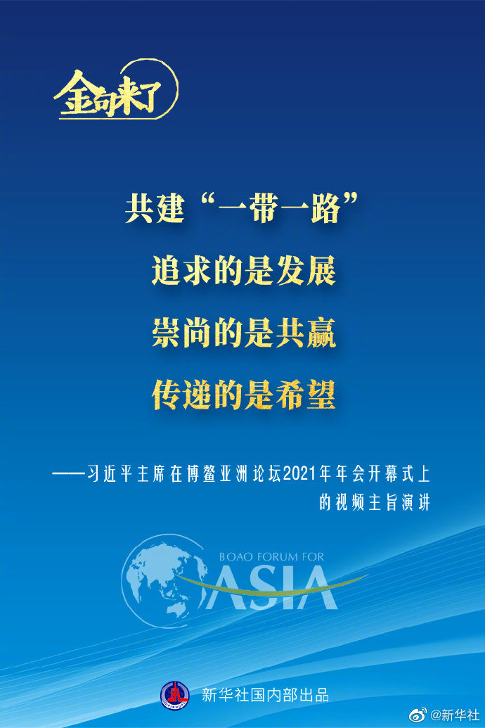 4月20日,習(xí)近平主席在博鰲亞洲論壇2021年年會開幕式上以視頻方式發(fā)表主旨演講。一起來看演講金句!?