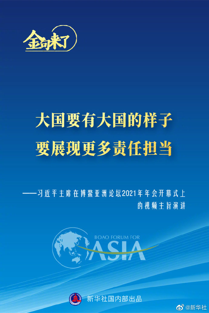 海報(bào):習(xí)近平在博鰲亞洲論壇2021年年會開幕式上發(fā)表主旨演講 新華社記者 鞠鵬 孟麗靜 編制