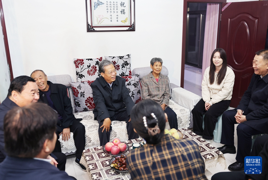 10月21日至24日,中共中央政治局常委、全国人大常委会委员长赵乐际在辽宁调研。这是10月21日,赵乐际在丹东调研时在农户家中与群众亲切交谈。新华社记者 刘卫兵 摄