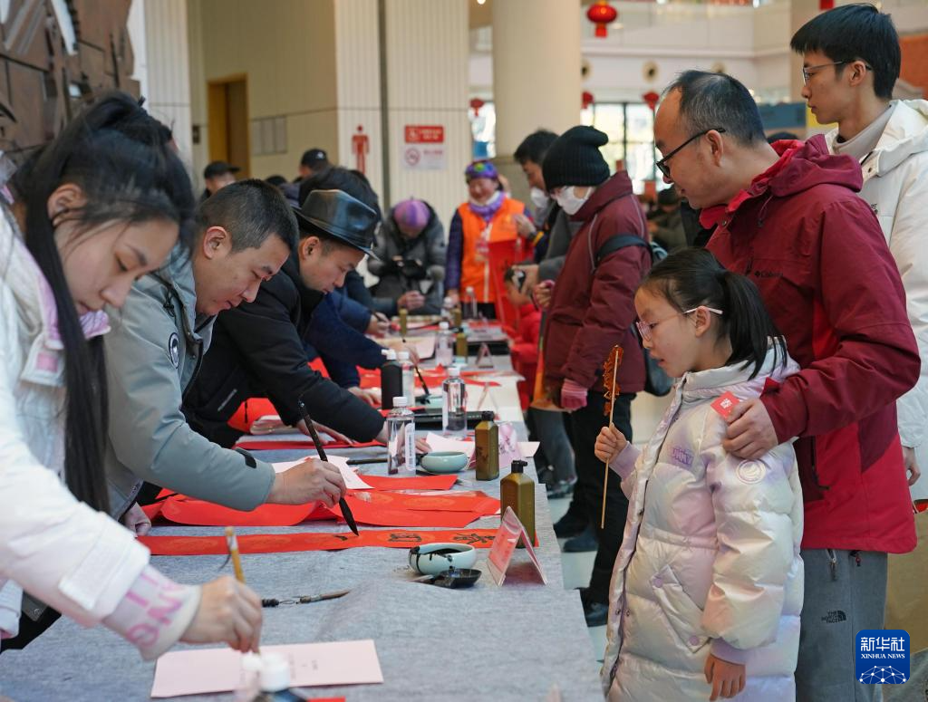 1月28日,书法家们现场为市民写春联、福字。
