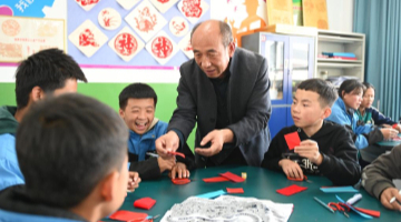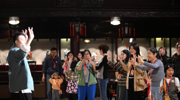 11月5日,外宾在河南省安阳市殷墟博物馆与一名小朋友交流。