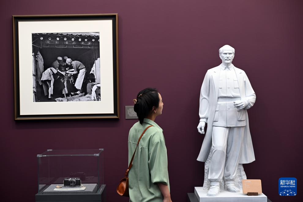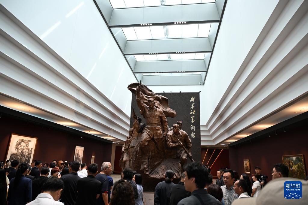 8月26日,由新华通讯社主办的“国社之镜·世纪光影之人民必胜”艺术展在北京国家金融信息大厦开展。展览共分为五个篇章,以中国战场为主视角,通过140余张珍贵历史照片、抗战文物和十余件著名艺术家的绘画及雕塑作品,铺展出一幅气壮山河的抗战全景图。