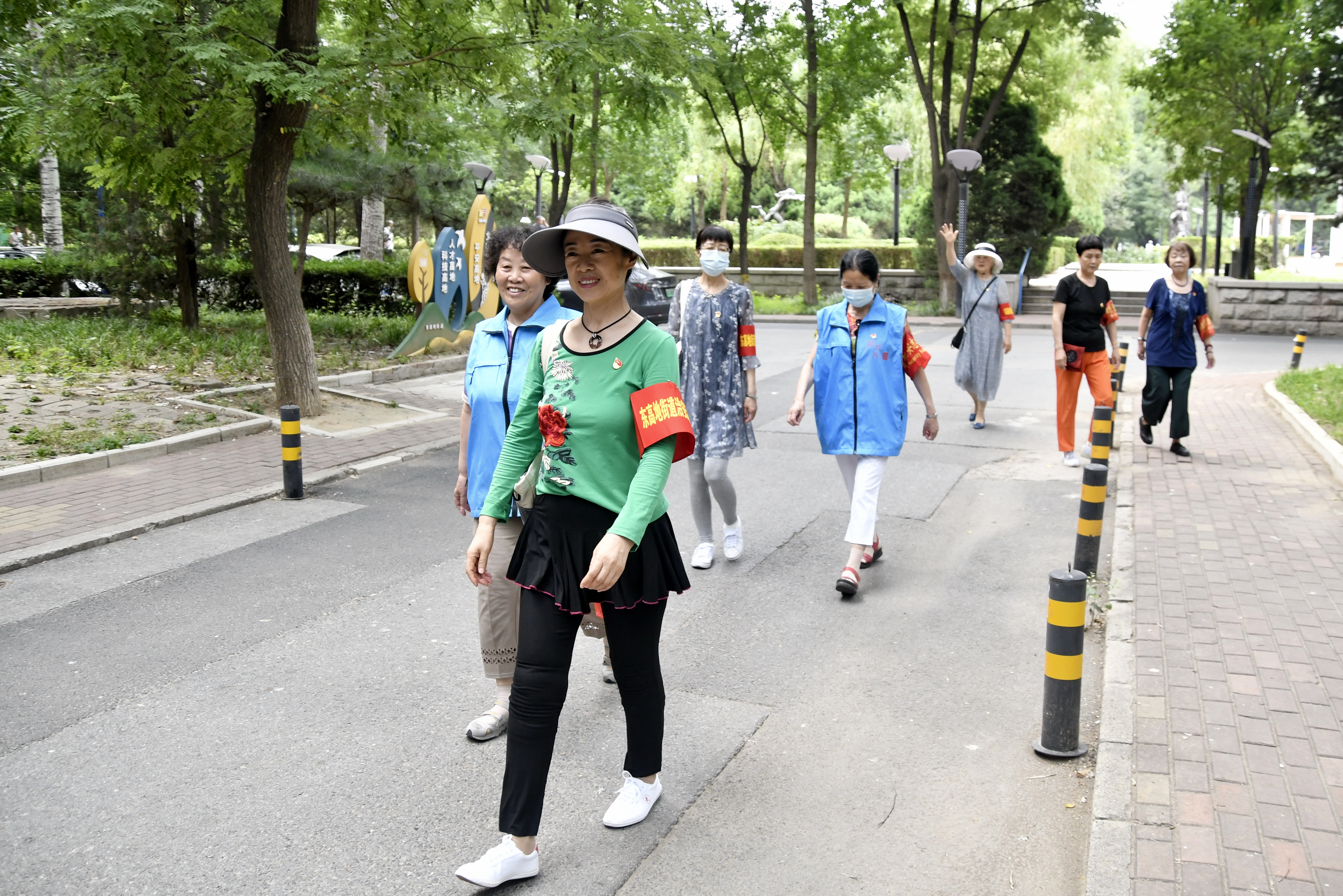 6月26日,东高地街道的老党员社区治安巡逻队队员在社区内巡查。新华社记者 李欣 摄