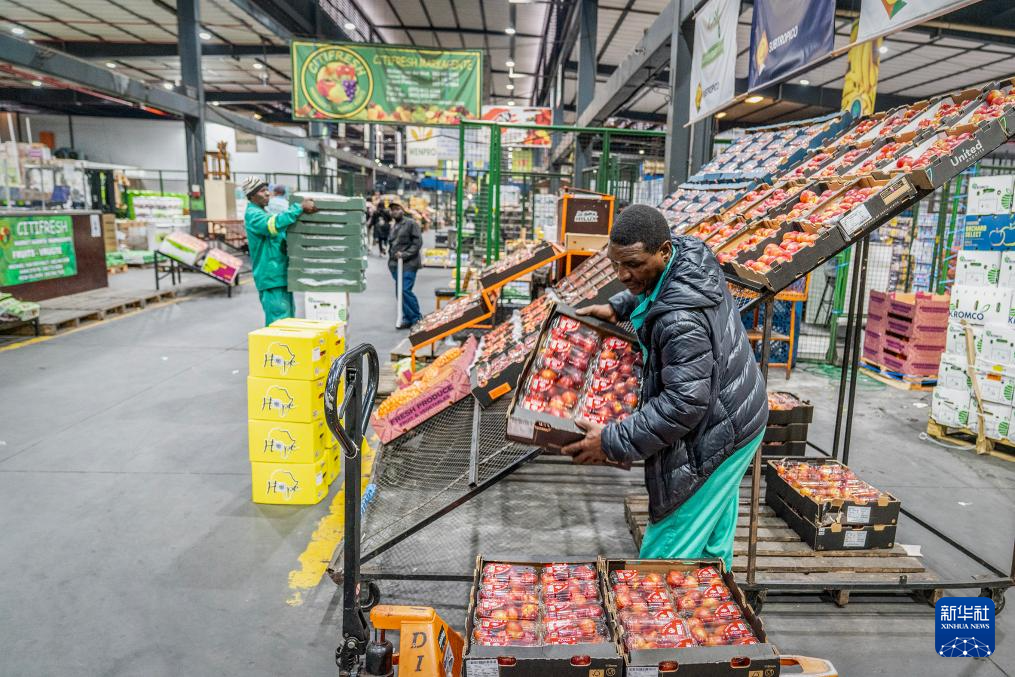 10月29日,在南非约翰内斯堡生鲜产品市场,一名工作人员包装油桃。