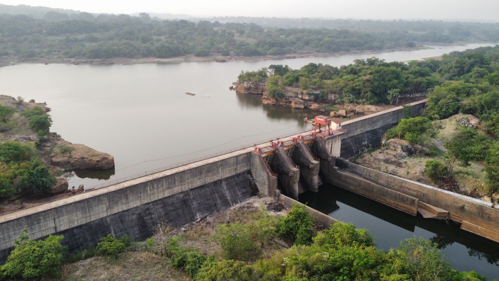 这是2025年4月24日在几内亚杜布雷卡省拍摄的凯乐塔水电站(无人机照片)。