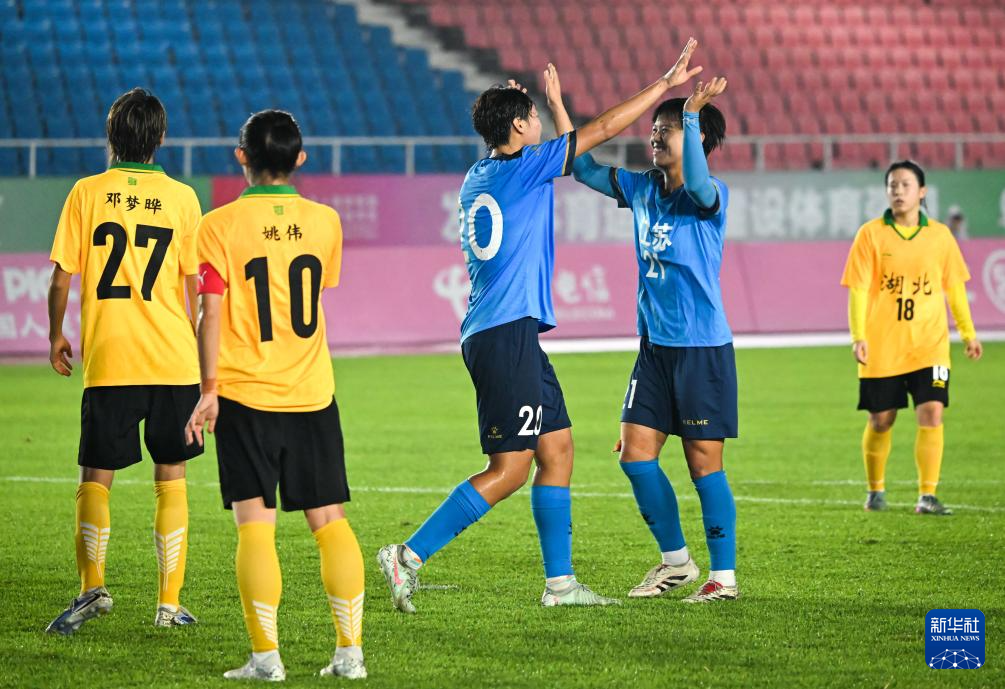 当日,在广东省佛山市举行的第十五届全国运动会足球女子成年组小组赛C组比赛中,江苏队2比1战胜湖北队。
