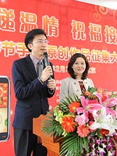 (2)彩信:圖片內容契合活動主題,格調健康向上。手機上傳彩信大小在50K以內,128×128像素或160×120像素;互聯網上傳電子賀卡大小500K以內。