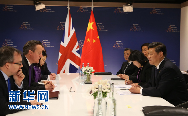 3月25日,國家主席習(xí)近平在荷蘭會見英國首相卡梅倫。新華社記者劉衛(wèi)兵攝