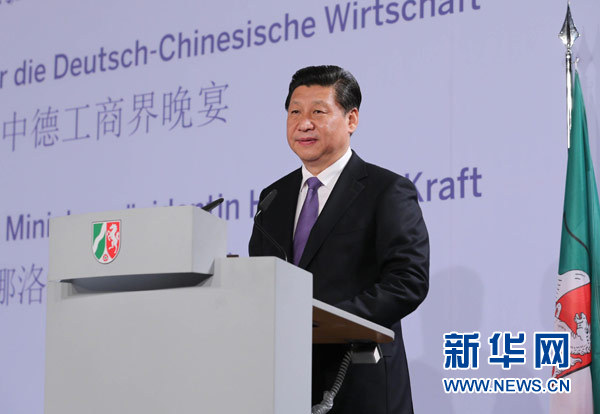 ??? 3月29日,國家主席習近平在杜塞爾多夫出席中德工商界舉行的招待會并發表題為《把握中國機遇,實現共同發展》的重要講話。 新華社記者張鐸攝