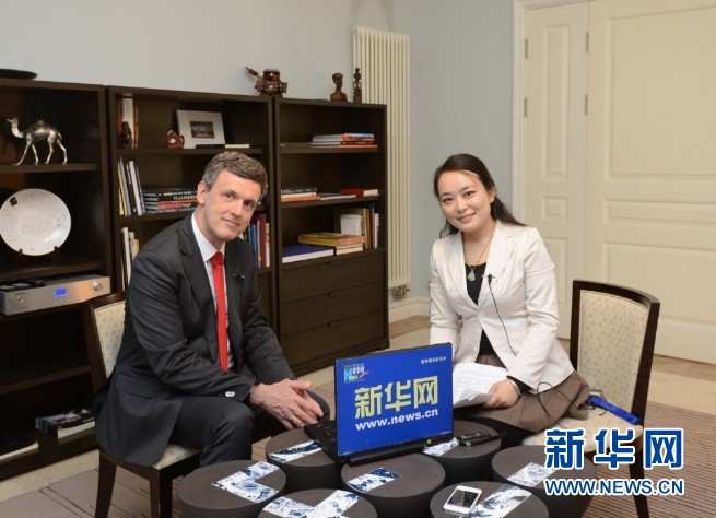 比利時(shí)王國(guó)駐華大使馬懷宇與新華網(wǎng)記者。新華網(wǎng)記者郭小天攝