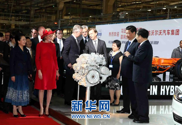 ????4月1日,國家主席習(xí)近平在比利時國王菲利普陪同下參觀沃爾沃汽車公司根特工廠。這這是習(xí)近平和菲利普國王共同為公司出口中國的第30萬輛汽車揭幕。 新華社記者 姚大偉 攝