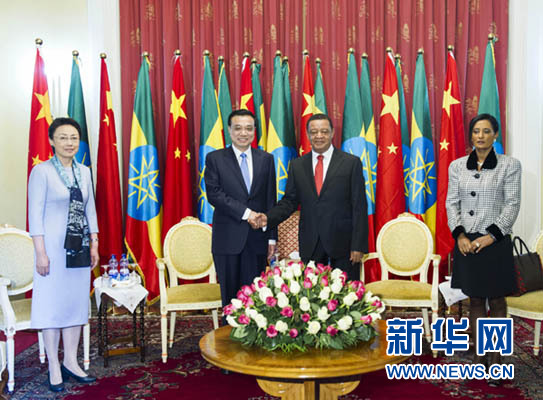 李克強(qiáng)總理夫人程虹、穆拉圖總統(tǒng)夫人梅阿扎參加會(huì)見(jiàn)。新華社記者王曄攝