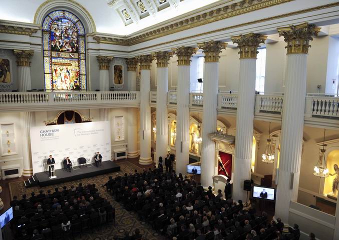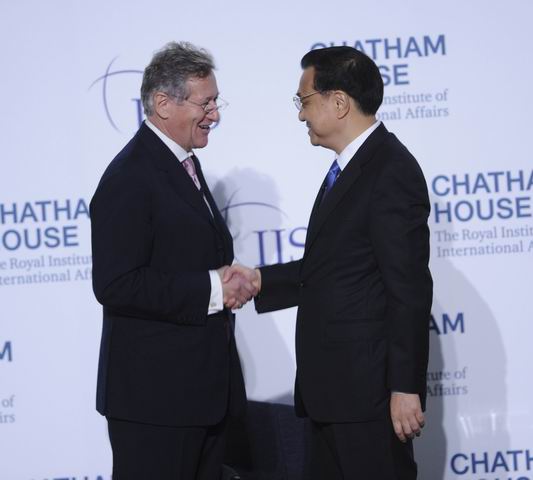 ??? 【英兩家頂級智庫搭臺 傾聽中國總理聲音】18日,李克強在擁有悠久歷史、金碧輝煌的倫敦金融城市長官邸,面向300多位智庫成員發(fā)表了題為《共建包容發(fā)展的美好世界》的演講?;始覈H事務(wù)研究所和國際戰(zhàn)略研究所同為全球頂級智庫。此間輿論認為,由兩家研究所共同舉辦同一場演講極為罕見。