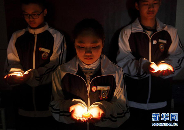 資料圖:學(xué)生為馬航失聯(lián)客機上的生命祈福 新華社發(fā) 駱善新 攝
