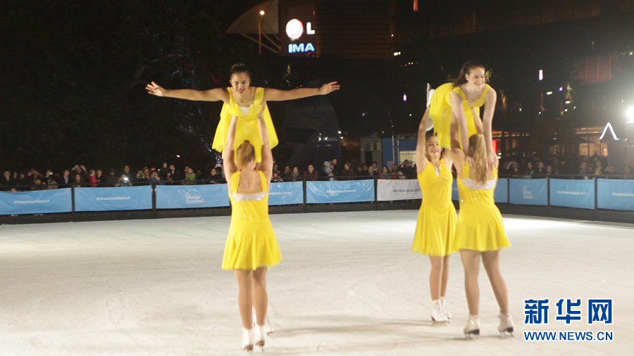 ????6月13日起,為期1個月的大型冬季冰雪活動在悉尼市中心的情人港(Darling Harbour)為悉尼市民冬季的生活增添了些許名副其實的冬季氣氛。圖為滑冰場開幕式上,冰舞演員翩翩起舞。新華社記者 李冰 攝