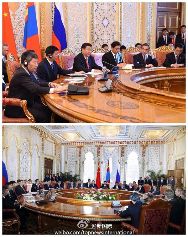 ????新華網(wǎng)北京9月12日電 據(jù)新華社“新國(guó)際”微博報(bào)道,國(guó)家主席習(xí)近平11日在出席中俄蒙三國(guó)元首會(huì)晤時(shí)說(shuō),中方提出共建絲綢之路經(jīng)濟(jì)帶倡議,獲得俄方和蒙方積極響應(yīng)。我們可以把絲綢之路經(jīng)濟(jì)帶同俄羅斯跨歐亞大鐵路、蒙古國(guó)草原之路倡議進(jìn)行對(duì)接,打造中蒙俄經(jīng)濟(jì)走廊。