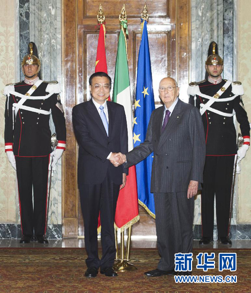 ????新華網(wǎng)羅馬10月14日電(記者俞錚 陳二厚)國務(wù)院總理李克強(qiáng)當(dāng)?shù)貢r間14日下午在羅馬總統(tǒng)府會見意大利總統(tǒng)納波利塔諾。