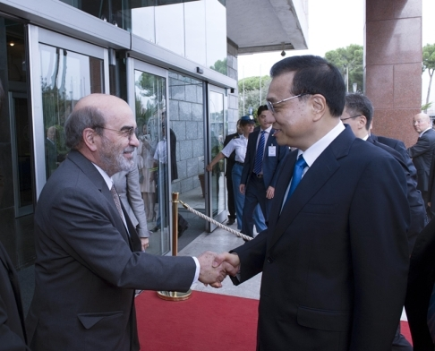 ????糧農組織總干事分管中國事務的秘書李軒說:“數月前,我們就向李克強總理發出了邀請??偢墒侣犝f李克強總理要訪問意大利并出席亞歐峰會,立即邀請李克強總理前來糧農組織總部訪問,李克強總理欣然同意了。”