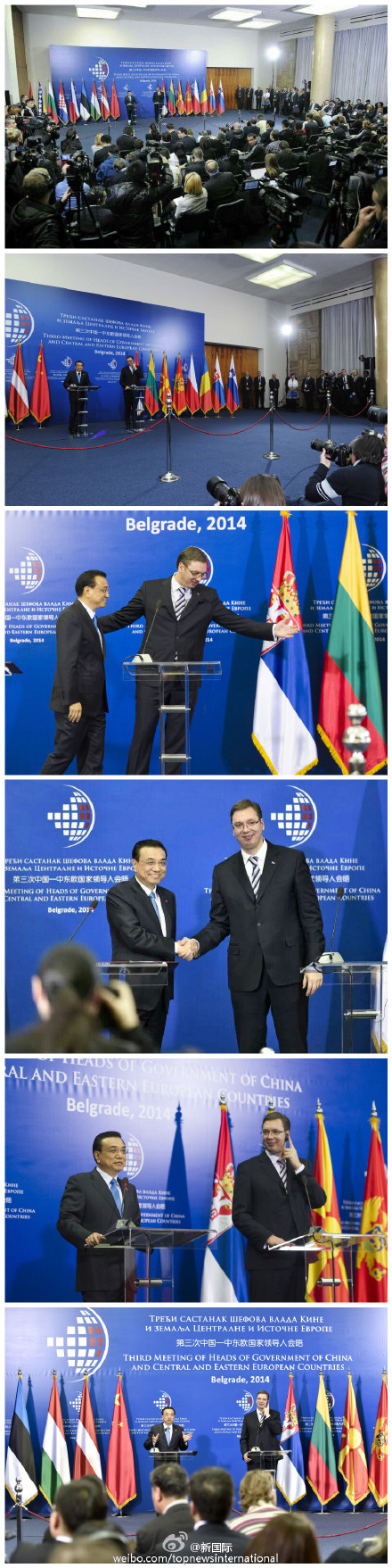 ??? 新華網(wǎng)北京12月17日電 據(jù)新華社“新國際”微博報道,李克強16日在貝爾格萊德出席中國-中東歐國家領(lǐng)導(dǎo)人會晤后與東道主塞爾維亞總理武契奇共見記者。總理說,中國-中東歐國家合作不僅有利于中國和中東歐國家,也有利于歐洲一體化和平衡發(fā)展,有利于歐盟擴大,有利于地區(qū)和世界的穩(wěn)定與發(fā)展。